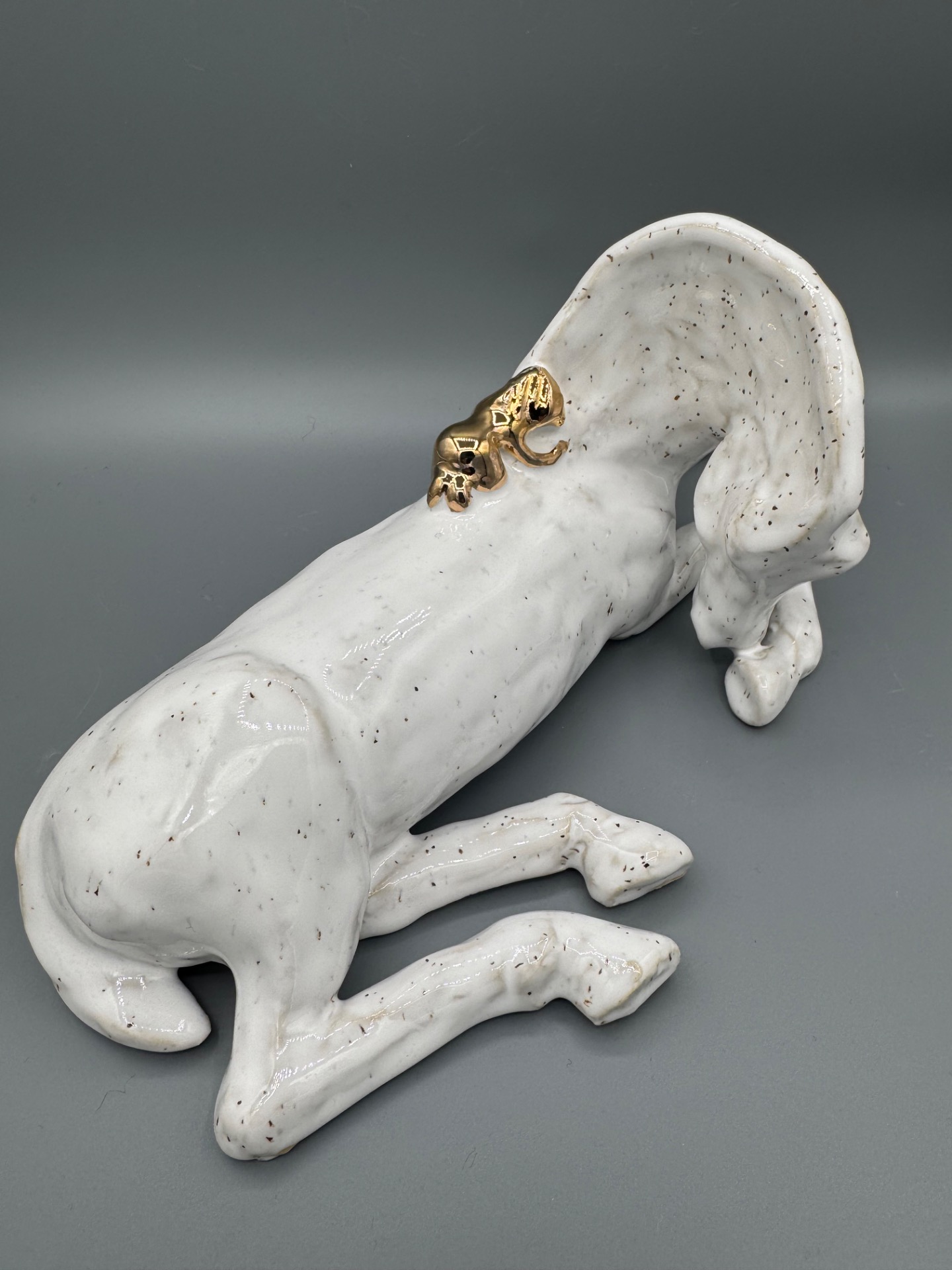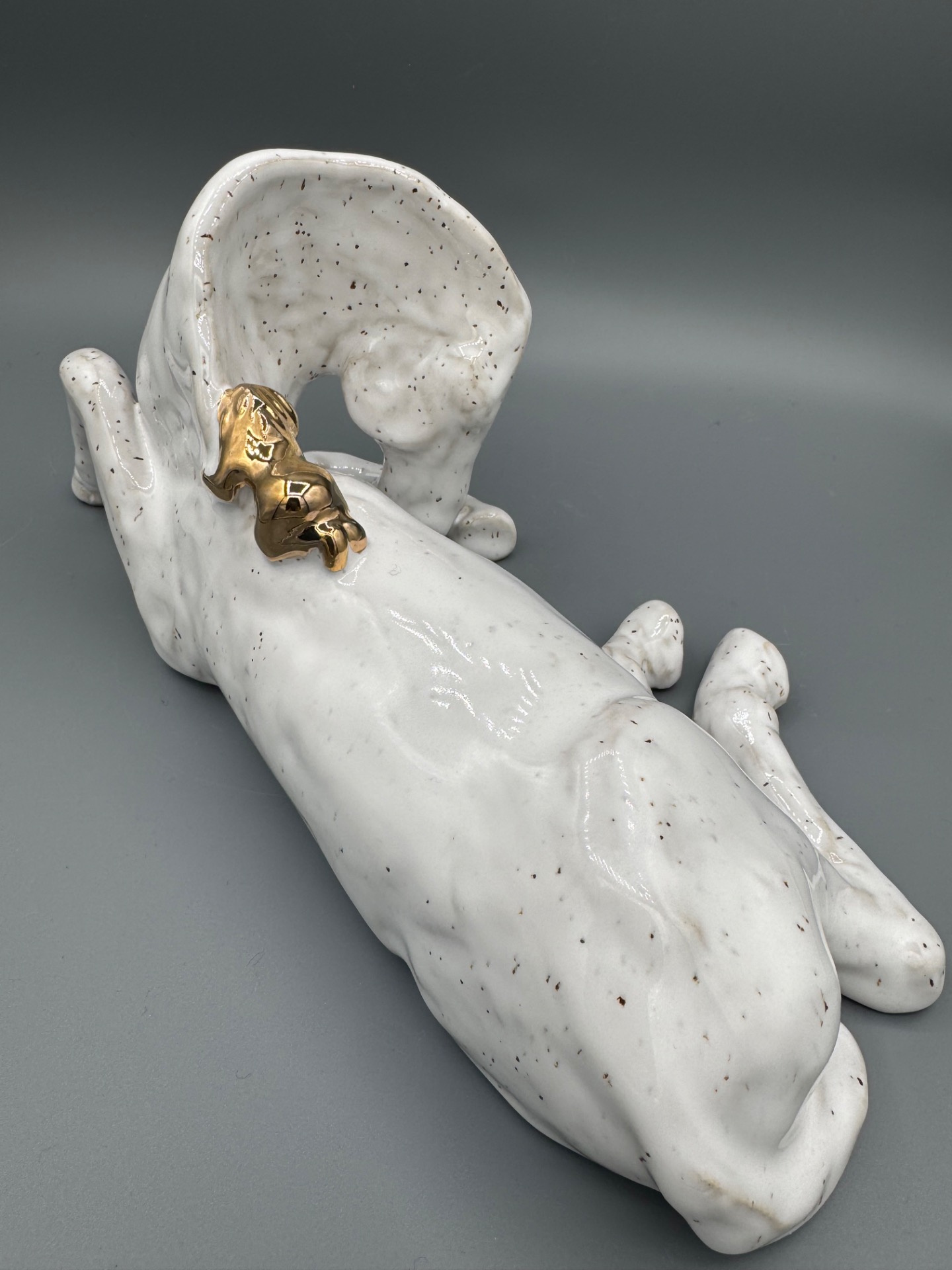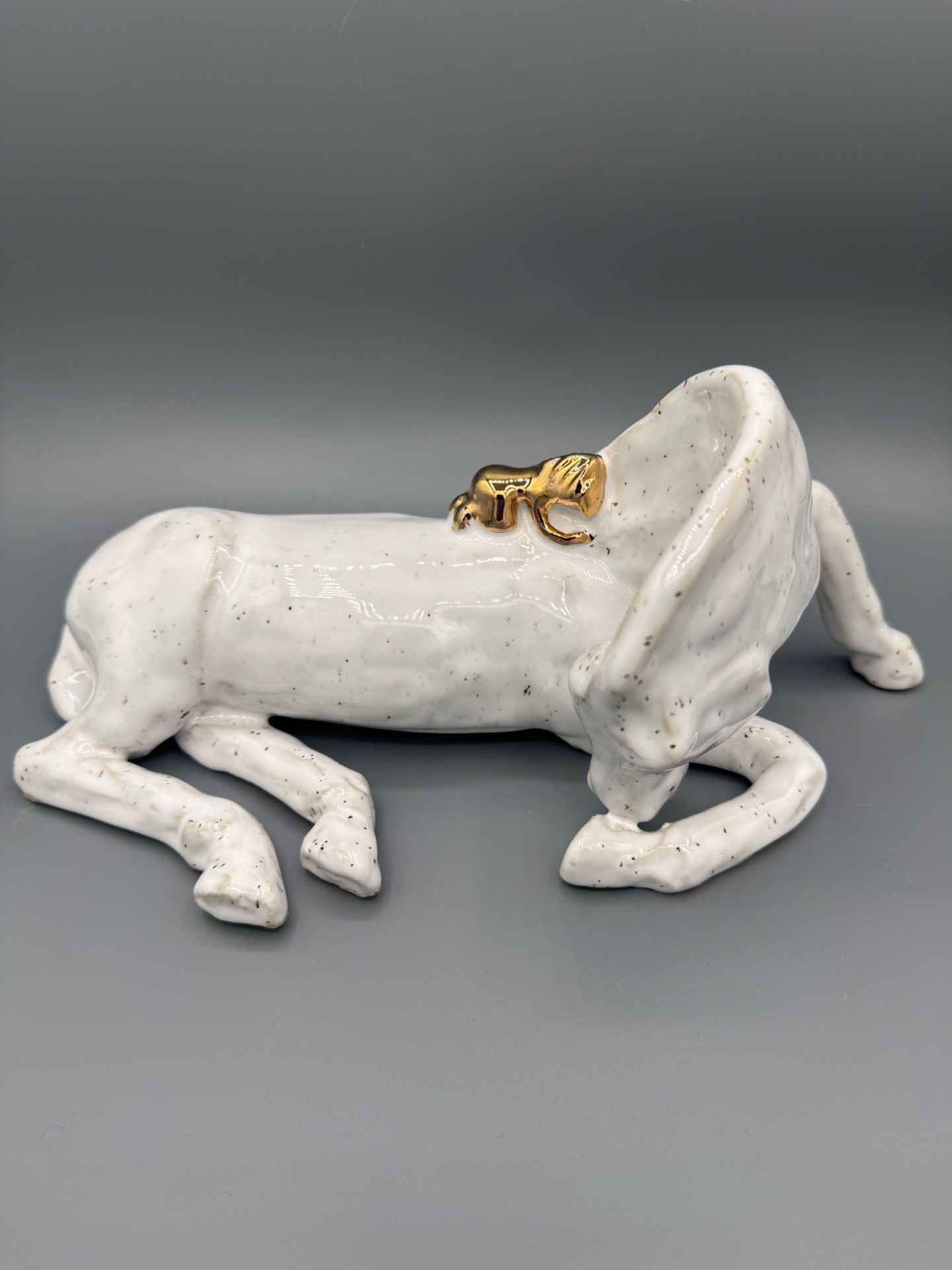 Käsinrakennettu korkeapolttoinen lasitettu uniikki keramiikkaveistos , kiiltokulta.